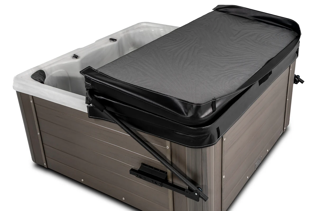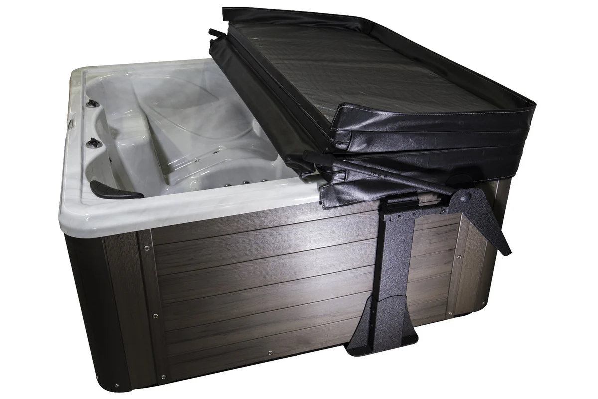 Dual-hydraulic lift system for smooth, one-handed spa cover removal. Durable, adjustable, and built for year-round performance.