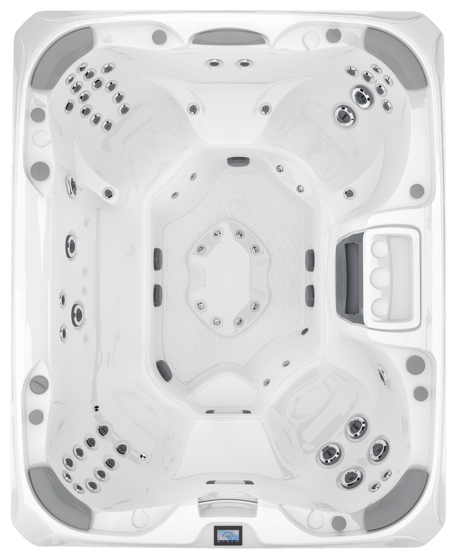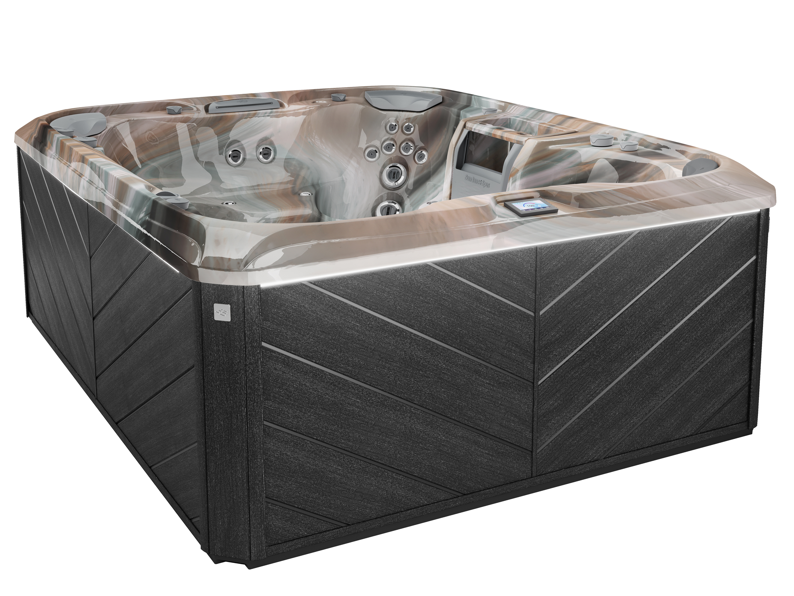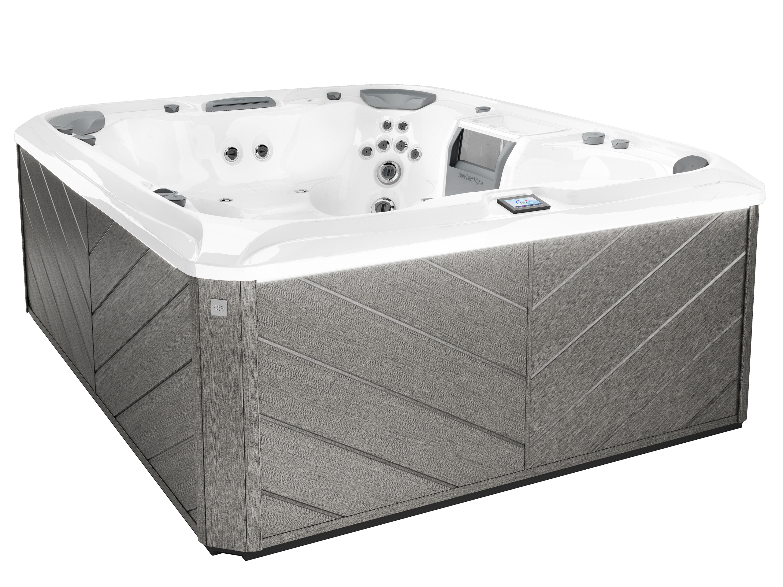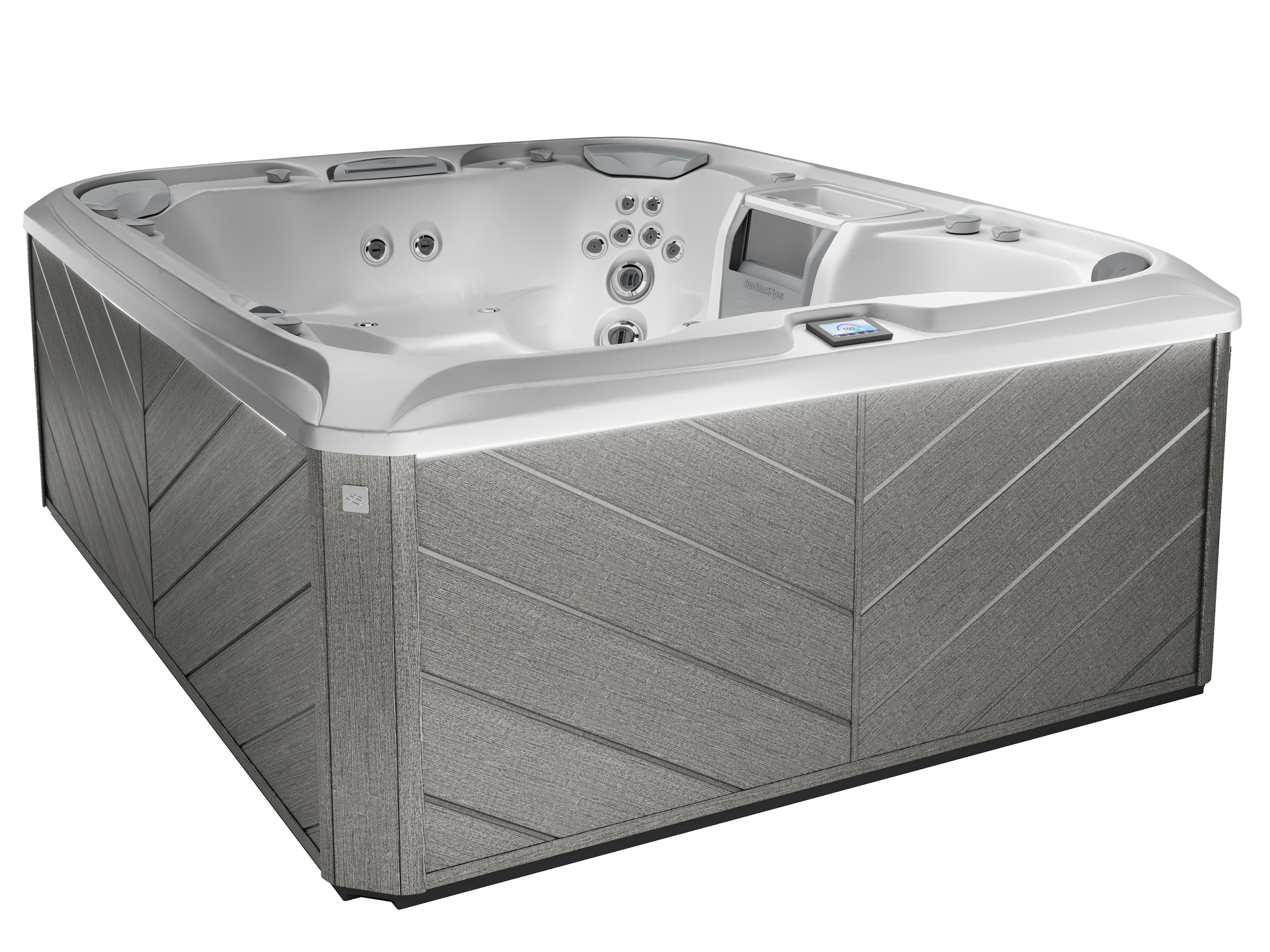 The largest 880™ model, the Aspen welcomes groups with open seating, 66 jets, and generous volume. It’s designed for deep-state relaxation and includes all the wellness and water-care features you expect from Sundance.