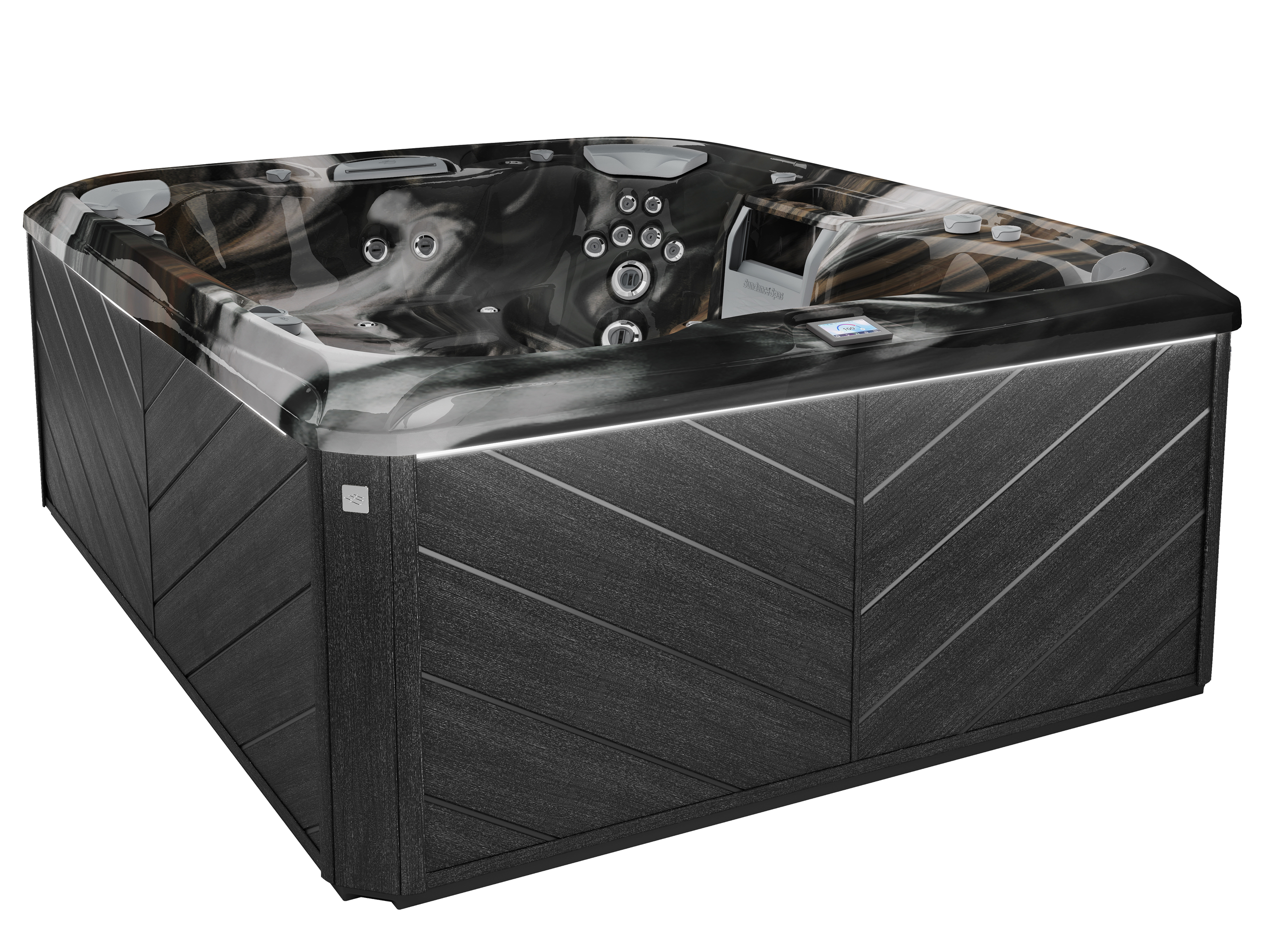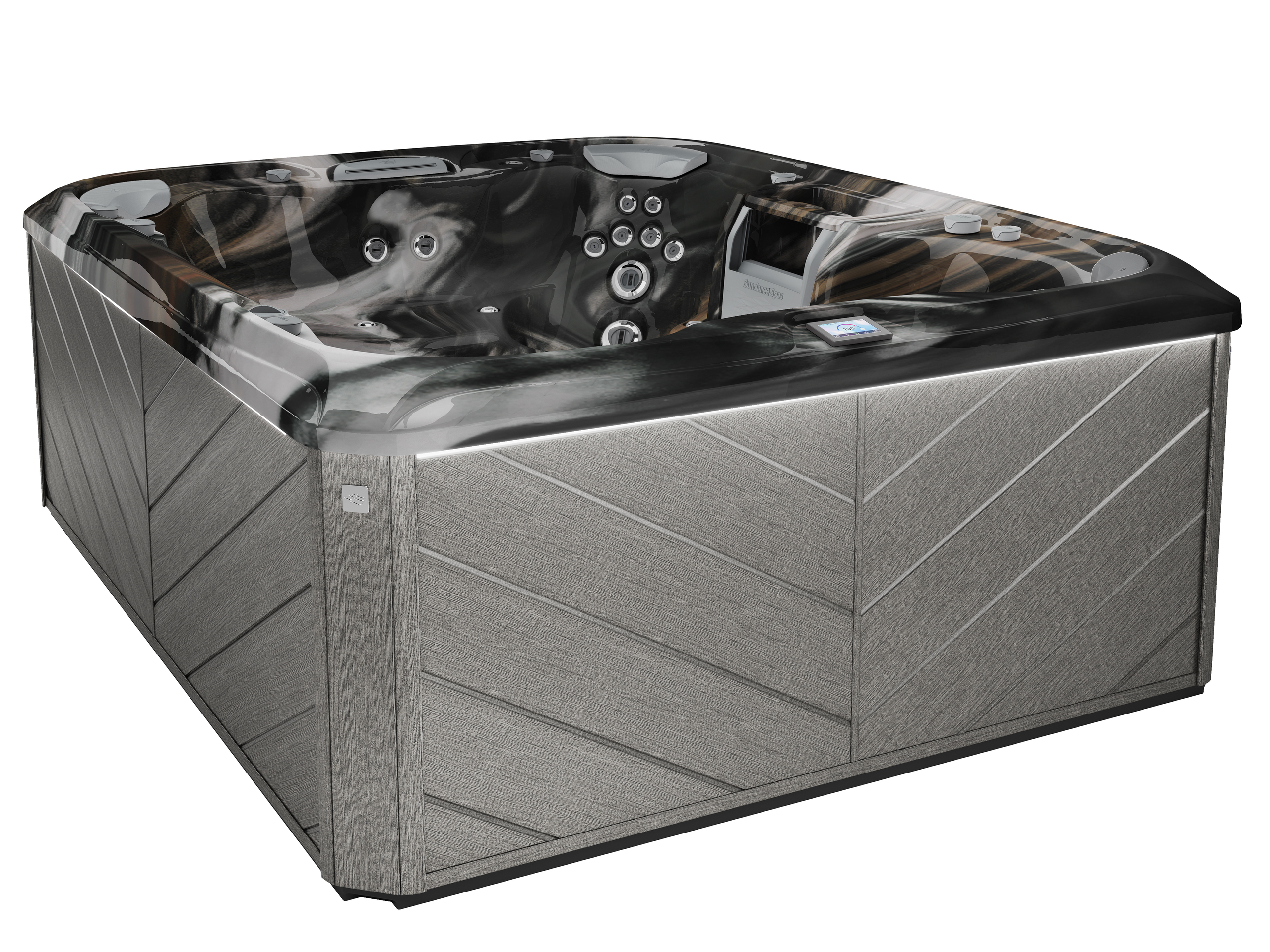 The 880 Series is designed to seamlessly integrate into your outdoor space while pampering you. The SunSide® cabinetry not only looks upscale but is built for durability and environmental responsibility. Subtle exterior LED lighting accents the corners for safety and ambiance during evening soaks.