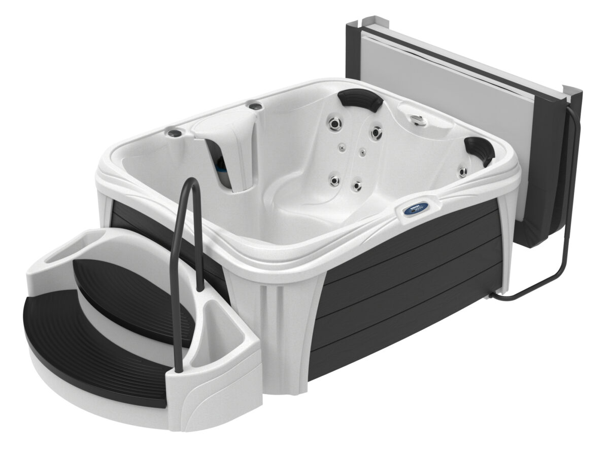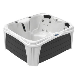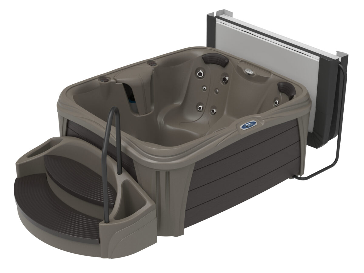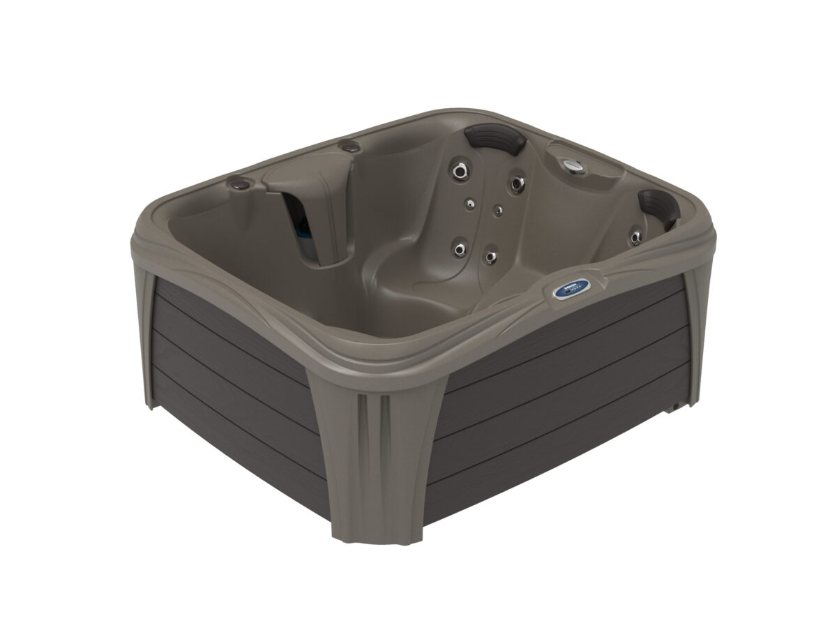 A compact, 5-person open seating spa that mixes sculpted and bench seats for versatile comfort. It features easy-to-adjust two-tone jets and an LED-lit adjustable water fountain to create a relaxing ambiance. The Paisley is patio-friendly and Plug n’ Play ready, with full-foam insulation and Syncrylic® construction to lock in heat efficiently and ensure lasting strength